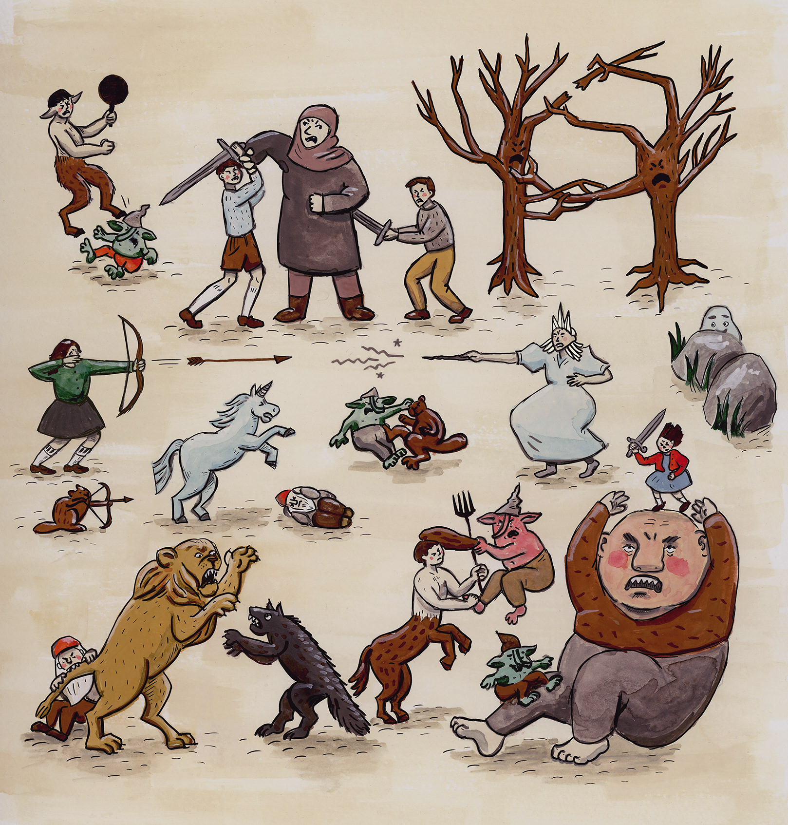 Skannade illustrationer i gouache och blandteknik. Motiv från C.S. Lewis berättelse om Narnia. 2022.